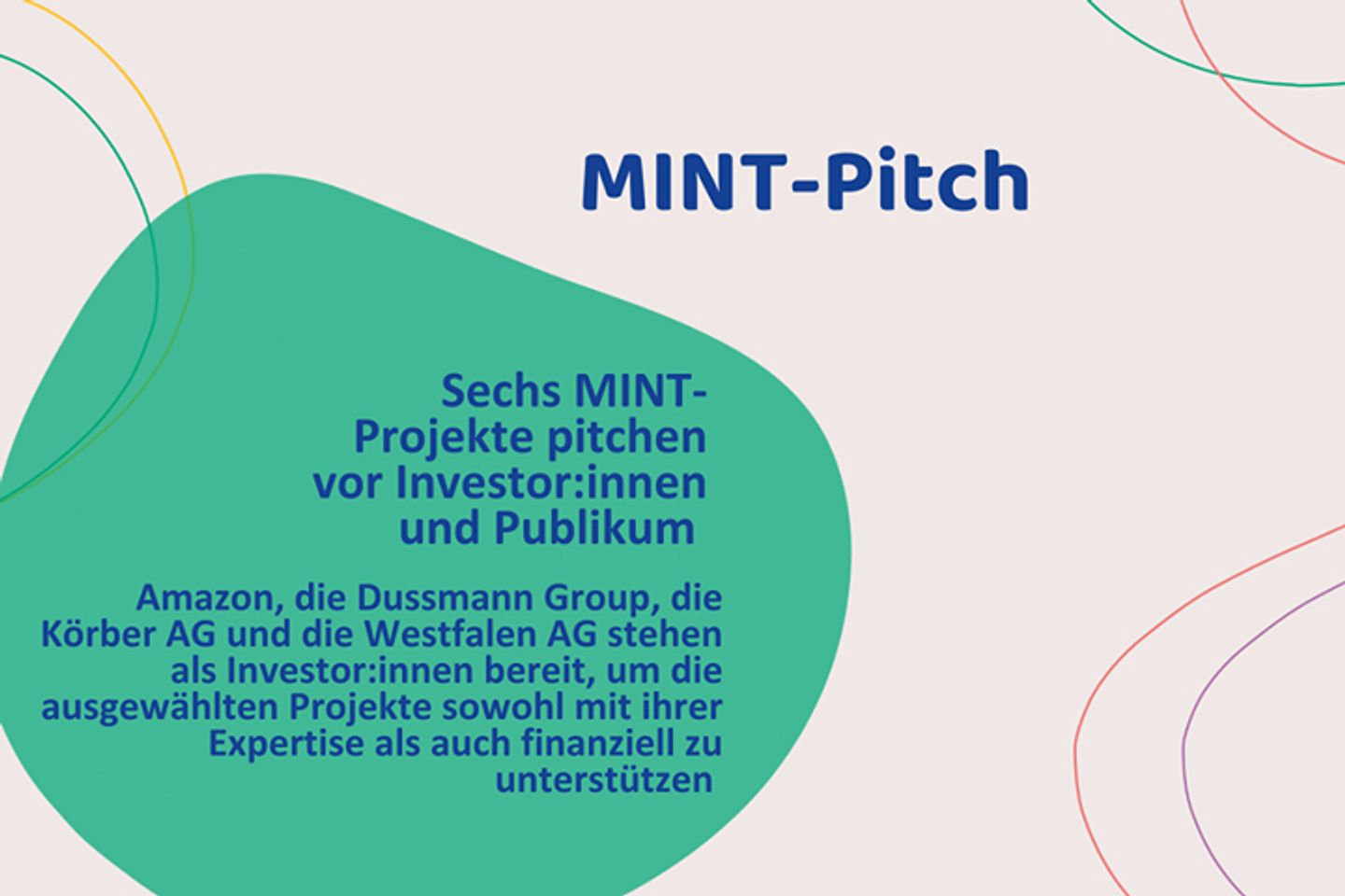 Premiere: Zum ersten Mal organisieren wir bei der MINTvernetzt-Jahrestagung einen MINT-Pitch nach dem Vorbild der "Höhle der Löw:innen". Wir haben uns von dem Fernsehformat inspirieren lassen und bieten sechs Projekten die Chance, vor der Jury und Euch als Publikum zu pitchen. Führende Vertreter:innen von großen Wirtschaftsunternehmen stehen als Investor:innen bereit, um die ausgewählten Projekte sowohl mit ihrer Expertise als auch finanziell zu unterstützen. Hierzu gehören Amazon , die Dussmann Group , die Körber AG und die Westfalen AG . Die ausgewählten Projekte werden in Kürze bekannt gegeben. Ihr hättet Euch auch bewerben wollen? Dann seid dabei und lasst Euch für das nächste Mal inspirieren. Alle Projekte haben von uns ein professionelles Pitch-Training erhalten. Vielleicht könnt Ihr Euch einen besonderen Trick oder eine unterhaltsame Idee abschauen?