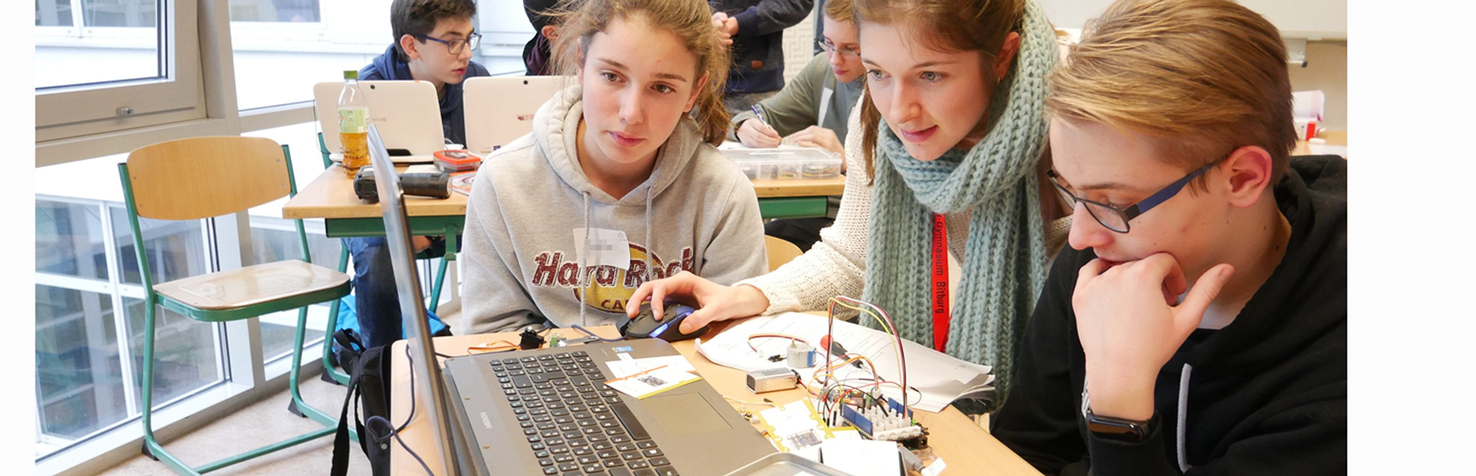 Kreatives Tüfteln im Team – das steht bei Make Your School im Mittelpunkt. Schüler*innen überlegen sich bei Hackdays, wie sie ihre Schule mithilfe digitaler und technischer Lösungen verbessern können. Mentor*innen unterstützen die Jugendlichen mit fachlichen Impulsen und geben Hilfe zur Selbsthilfe.  Make Your School ist ein Projekt von Wissenschaft im Dialog. Die Klaus Tschira Stiftung ist bundesweiter Förderer. Die Vector Stiftung ist Regionalförderer für Baden-Württemberg.