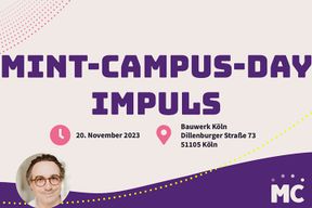Am 20.11. findet unser erster MINT-Campus-Day in Köln statt. Der MINT-Campus ist die Lernplattform für die MINT-Community und steht für Fort- und Weiterbildungsmöglichkeiten. Ganz in diesem Sinne möchten wir den Tag mit Euch zelebrieren. Euch erwarten spannende Speaker:innen zur Zukunft des Lernens und zum wichtigen Thema Neurodiversität. Dazu bieten wir eine ganze Reihe an Mini-Fortbildungen im Workshop-Format an, die alle das Ziel haben, einen direkten Mehrwert für Eure Arbeit zu schaffen. Natürlich gibt es immer wieder Zeit und Raum für den Austausch mit anderen MINT-Akteur:innen. Freut Euch auf Keynotes, eine spannende Workshopreihe in zwei Zeitslots. Zum Ausklang des Tages laden wir Euch zu einem gemeinsamen Networkingabend ein. Hotelempfehlung:Motel One Köln-Messe, Hans-Imhoff-Straße 3, 50679 KölnTel: 0221 / 670027-0E-Mail: koeln-messe@motel-one.com