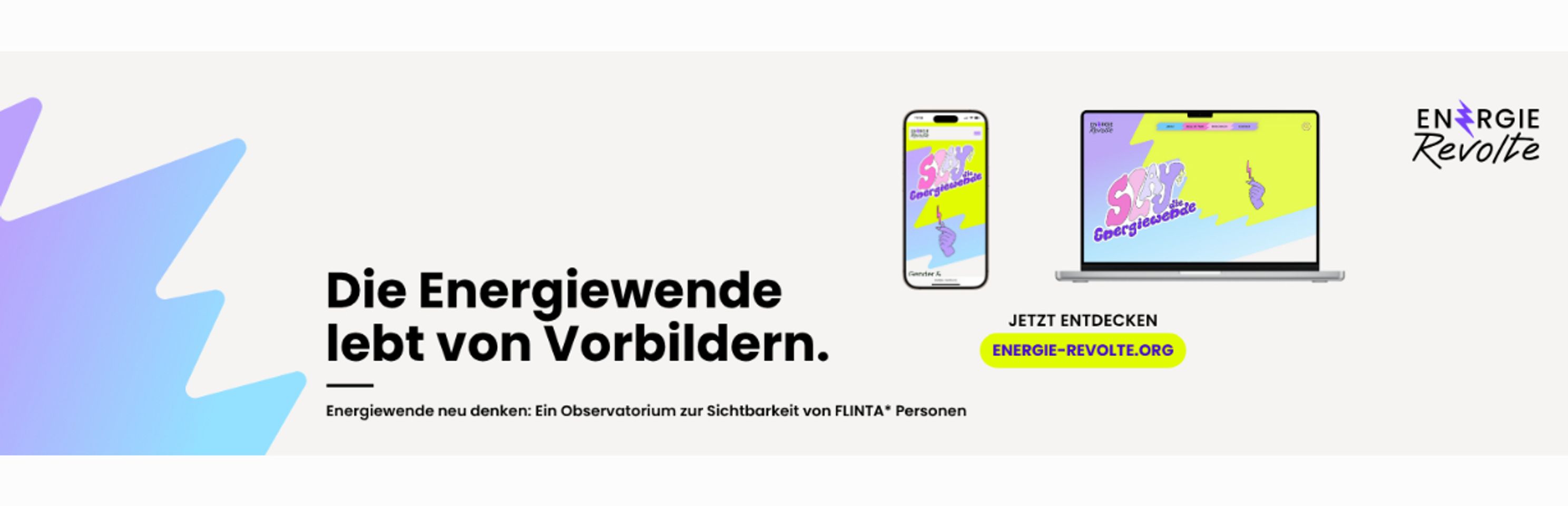 eine Social-Media-Initiative, die Tabus im Energiesektor bricht. Der Energiesektor ist ein Schlüsselbereich für die Zukunft – doch Frauen, Mädchen und genderqueere Personen sind dort nach wie vor unterrepräsentiert und oft unsichtbar. Energie-Revolte macht diese strukturellen Ungleichheiten sichtbar, rückt FLINTA*-Perspektiven in den Mittelpunkt und zeigt, wie wir eine faire und inklusive Energiewende erreichen.