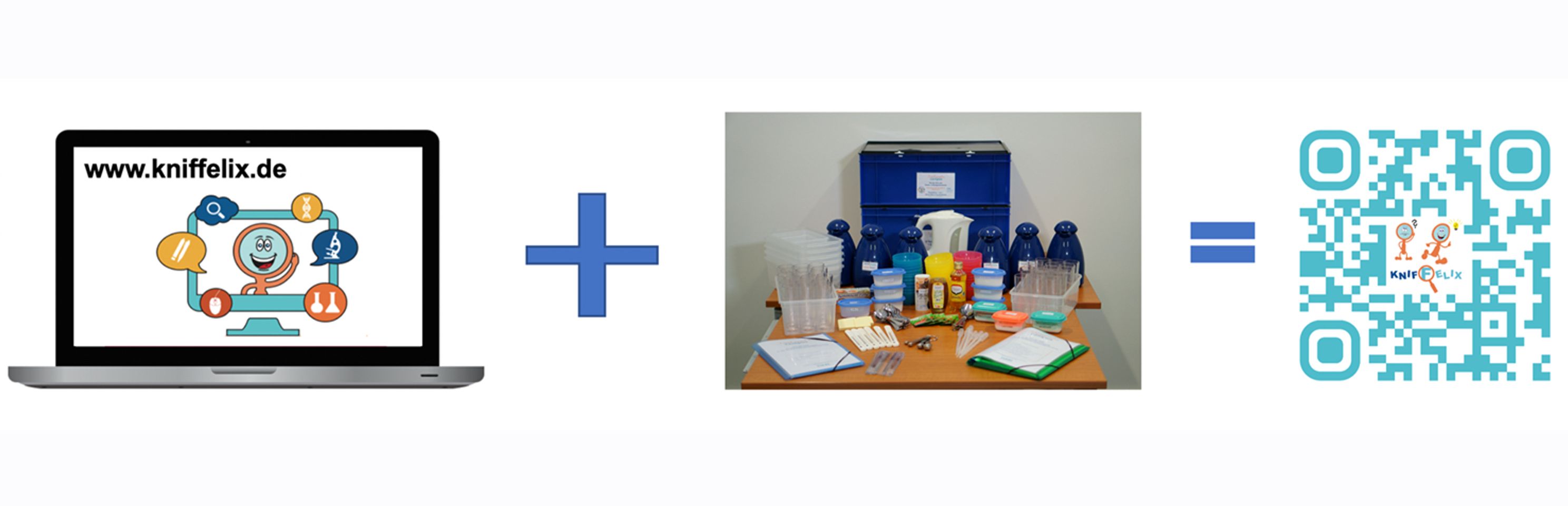 Auswählen des gewünschten Themas auf www.kniffelix.de mit einem Tablet oder Computer. (Ein Smartphone geht ebenso, jedoch ist der Bildschirm für einzelne Lernspiele etwas klein.) Texte, Videos, Lernspiele nach Wunsch lesen, schauen und umsetzen. Experimente mit Alltagsmaterial in der Küche, im Garten oder am Schreibtisch selber machen und anschließend am digitalen Endgerät weiter digital begleitet werden beim Lernen. (Sollten die Experimente nicht gemacht werden können, können die Erklärungen auch verstanden werden. Jedes Thema bietet Empfehlungen welche Materialien alternativ verwendet werden können, wenn die abgebildeten nicht beschafft werden können.) Video-Laborbesuche und Interviews mit Studierenden oder Mitarbeitenden aus MINT-Berufen zum Abschluss jedes Themas.